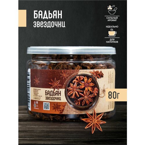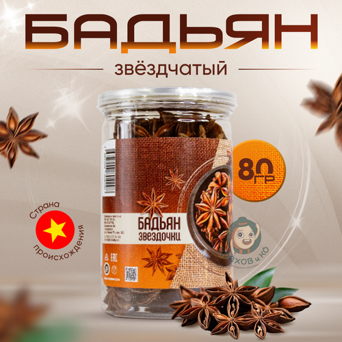 Бадьян звездчатый, цельный, анис натуральный звездочки 80 грамм в банке