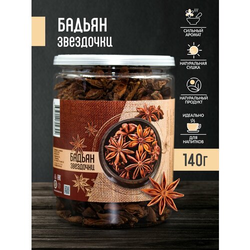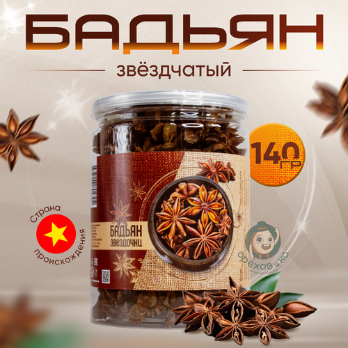 Бадьян звездчатый, цельный, анис натуральный звездочки 140 грамм в банке