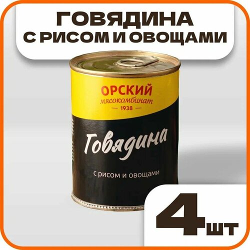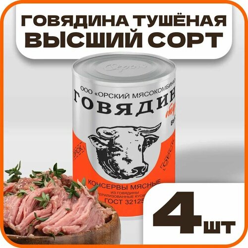 Говядина тушеная высший сорт ГОСТ, в наборе 4 шт по 338гр, Орский мясокомбинат
