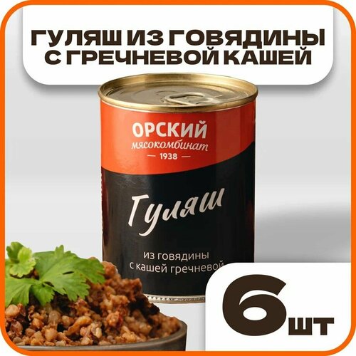 Гуляш из говядины с кашей гречневой, в наборе 6 шт по 338 гр, Орский мясокомбинат