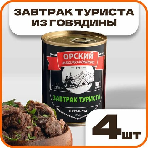 Завтрак туриста из говядины "Премиум" ГОСТ, в наборе 4 шт по 350гр, Орский мясокомбинат