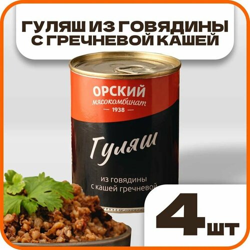 Гуляш из говядины с кашей гречневой, в наборе 4 шт по 338 гр, Орский мясокомбинат