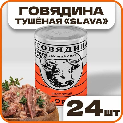 Говядина тушеная высший сорт "Слава" ГОСТ, в наборе 24 шт по 338гр, Орский мясокомбинат