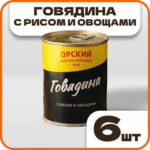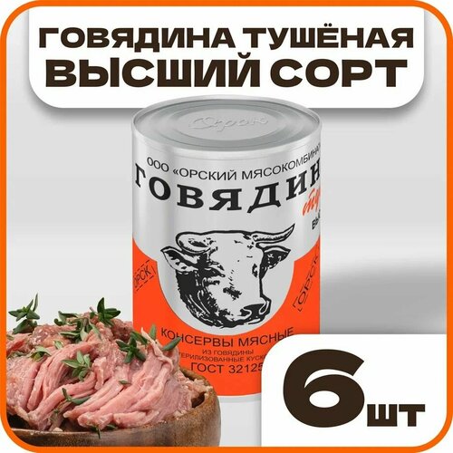 Говядина тушеная высший сорт ГОСТ, в наборе 6 шт по 338гр, Орский мясокомбинат