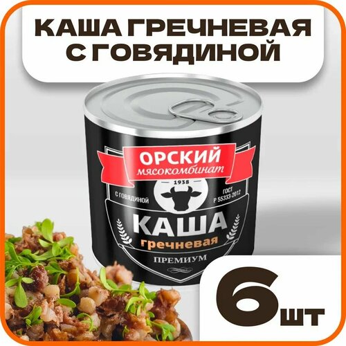 Каша гречневая с говядиной Премиум в наборе 6 шт по 250 г, Орский мясокомбинат