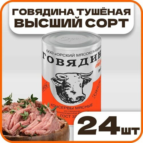 Говядина тушеная высший сорт ГОСТ, в наборе 24 шт по 338гр, Орский мясокомбинат