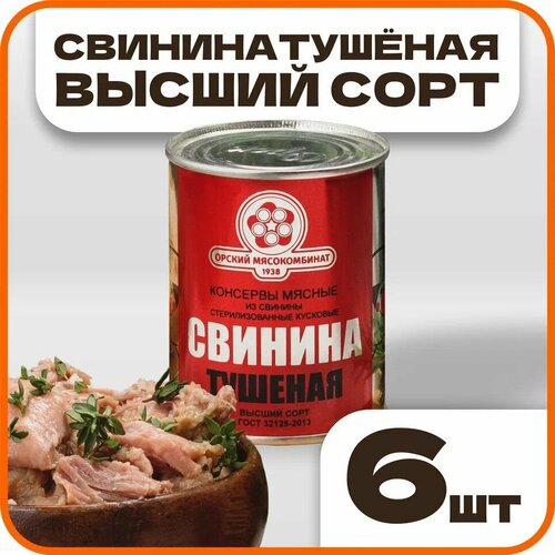 Свинина тушеная высший сорт ГОСТ, в наборе 6 шт по 338гр, Орский мясокомбинат