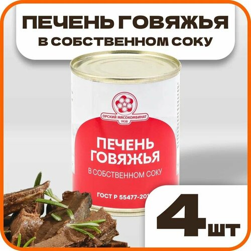 Печень говяжья в собственном соку ГОСТ, в наборе 4 шт по 340 гр, Орский мясокомбинат