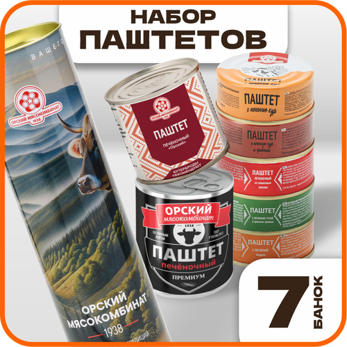 Подарочный ассорти-бокс паштетов, в наборе 7 шт, Орский мясокомбинат