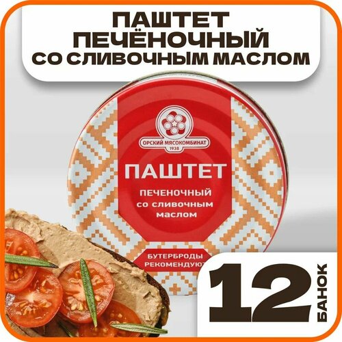 Паштет печеночный со сливочным маслом ГОСТ, в наборе 12 шт по 100гр, Орский мясокомбинат
