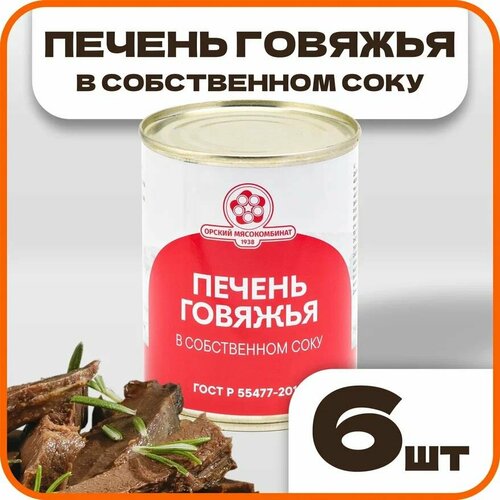 Печень говяжья в собственном соку ГОСТ, в наборе 6 шт по 340 гр, Орский мясокомбинат