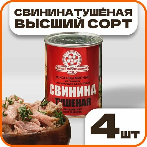 Свинина тушеная высший сорт ГОСТ, в наборе 4 шт по 338гр, Орский мясокомбинат