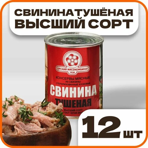 Свинина тушеная высший сорт ГОСТ, в наборе 12 шт по 338гр, Орский мясокомбинат