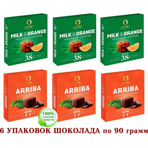 Шоколадный набор-шоколад OZERA — ARRIBA горький 77,7% + молочный с апельсином OZera Milk & Orange 38 % cacao, озерский сувенир 6 шт. по 90 грамм