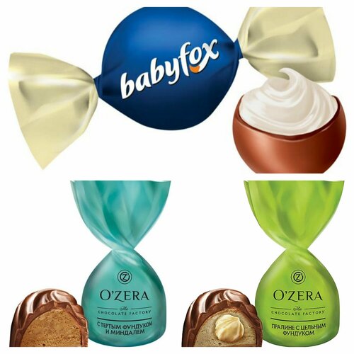 Шоколадные конфеты "O"Zera", ассорти пралине с цельным фундуком, с тертым миндалем и беби Фокс гэлекси500гр