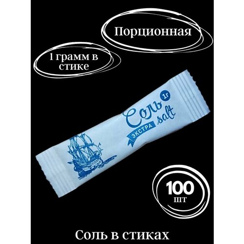 Столовая соль пищевая в стиках по 1гр, 100 шт
