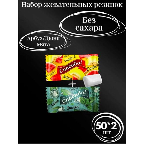Набор жевательных резинок из 2 вкусов (50шт — Морозная Мята, 50шт — Арбузно-Дынный коктейль)