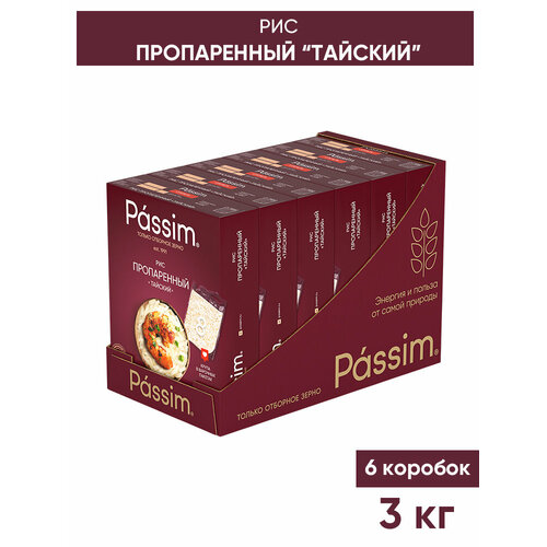 Рис длиннозерный пропаренный PASSIM Тайский в пакетиках для варки 3 кг (6 шт по 500 г)