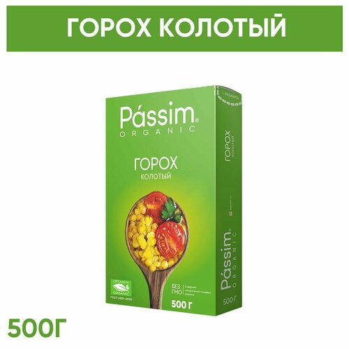 Горох колотый PASSIM Organic, желтый, органический, без ГМО, 0.5 кг