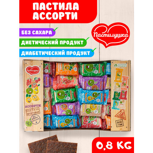 Пастила пастилушка ассорти, комплект 5 шт натуральная, фруктовая, без сахара, 800 г, коробка с окном