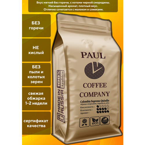 Кофе в зернах Колумбия Супремо Киндио 500 г Рaul Coffee Company 100% Арабика