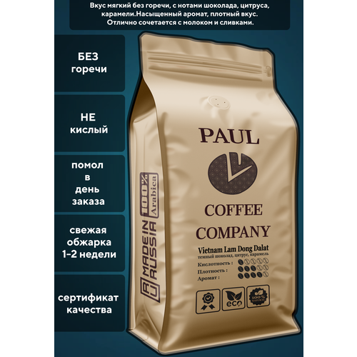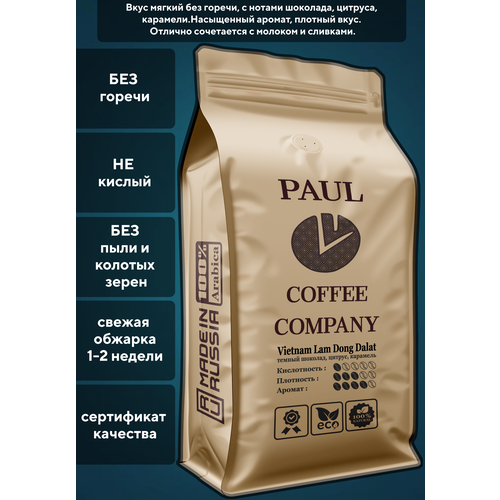 Кофе в зернах Вьетнам Ламдонг Далат 500 г Рaul Coffee Company 100% Арабика