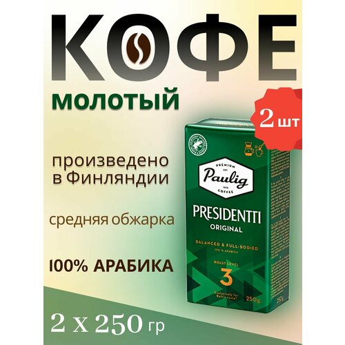 Кофе молотый арабика 100% Paulig Presidentti Original (Обжарка №3), 2 шт по 250 г. Финляндия.