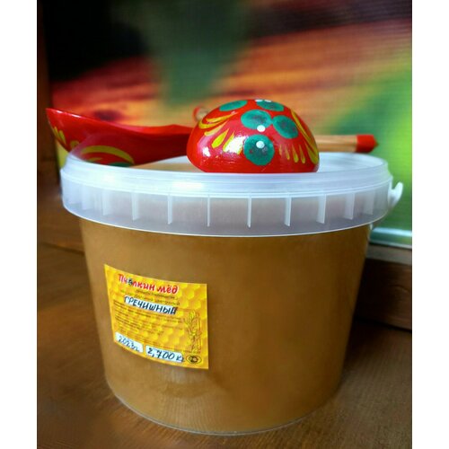 Гречишный натуральный мёд Алтайского края, в пластиковой банке, 2,700кг.