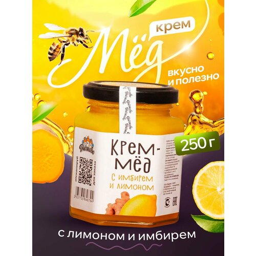Мед с Лимоном и Имбирем "Пчёлково", 250 гр, цветочный, с сублимированными фруктами и молотым имбирем.