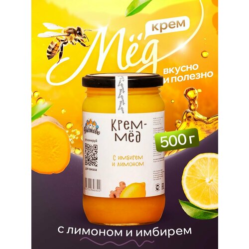 Мед с Лимоном и Имбирем "Пчёлково", 500 гр, цветочный, с сублимированными фруктами и молотым имбирем.