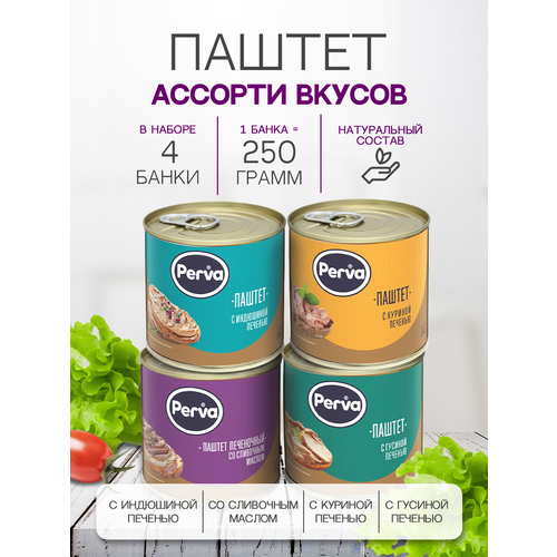 Набор ассорти из 4 паштетов Perva по 250г, курганский мясокомбинат, намазка на хлеб