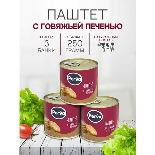 Комплект Паштет Деликатесный c говяжьей печенью 250 гр. Perva ключ — 3 штуки