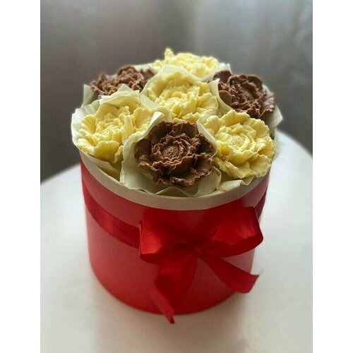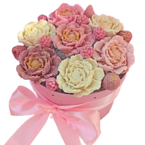 Букет из 7 шоколадных пионов в шляпной коробке ShokoTrendy SND47