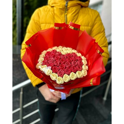 Букет ShokoTrendy "51 шоколадная роза", ручная работа, подарочная упаковка