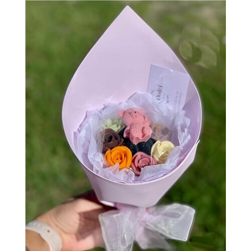 Букет из конфет в виде роз с ягодами и шоколадным мишкой ShokoTrendy 7R1M5YAG