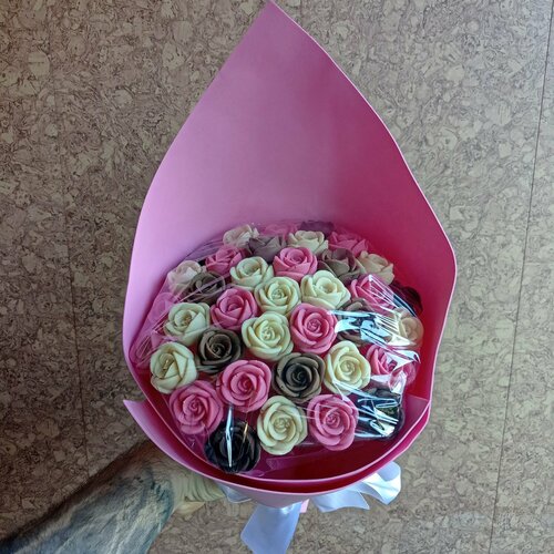 Букет из шоколадных роз "ShokoTrendy", красный, ручная работа, 500г