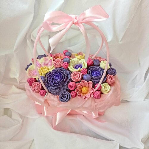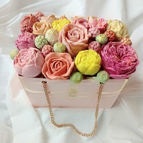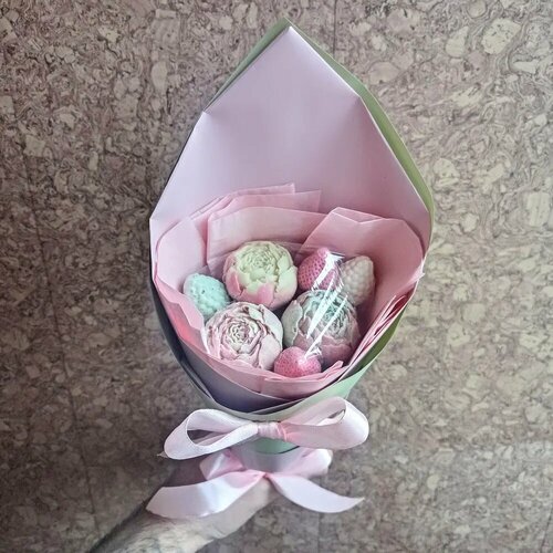 Шоколадный букет ShokoTrendy "3 пиона, 4 ягоды", белый шоколад, без ГМО