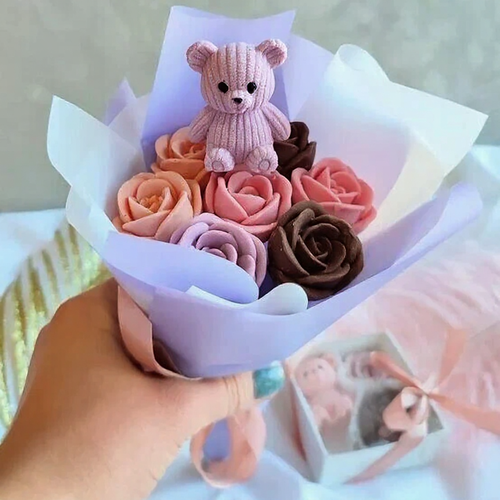 Шоколадный букет для детей розы с мишкой из шоколада ShokoTrendy