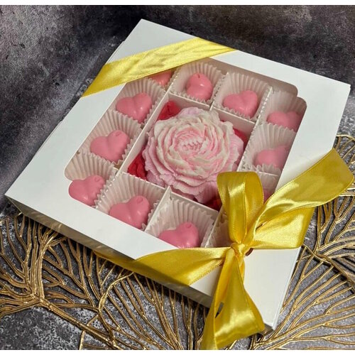 Шоколадный набор подарочный ручной работы "Шоколадный цветок с сердечками" ShokoTrendy