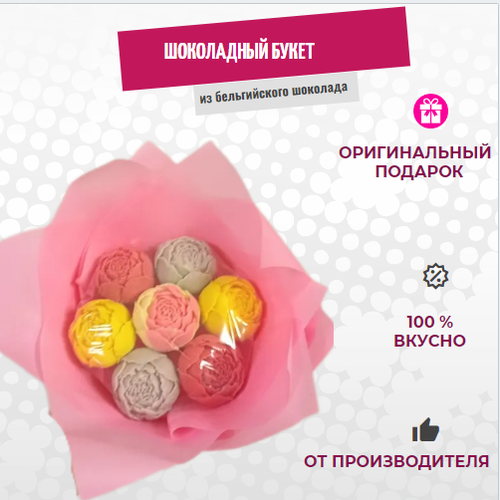 Шоколадный букет из пионов ShokoTrendy 7 шт, разноцветные, 140 гр