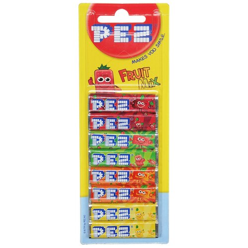 PEZ конфета Fruit Mix конфеты. Вкусы: малина, вишня, апельсин, лимон 8 штук в блистере для игрушки pez