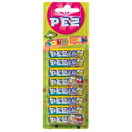 PEZ Конфета Кислючка Красит язык, набор 8 штук в блистере 68 гр, конфеты для игрушек Петс