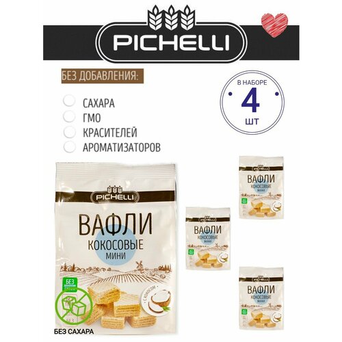PICHELLI, вафли без сахара кокосовые мини, 4 шт. * 125 гр