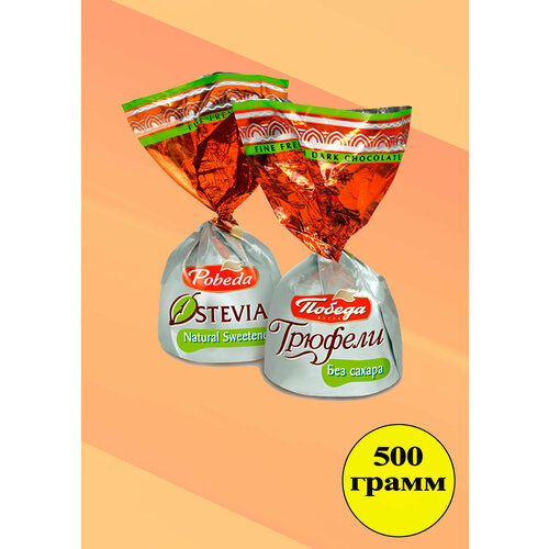 Конфеты Победа вкуса Трюфели шоколадные с коньяком и с ликером айриш крем (два вида), без сахара, 150 г, пластиковый пакет