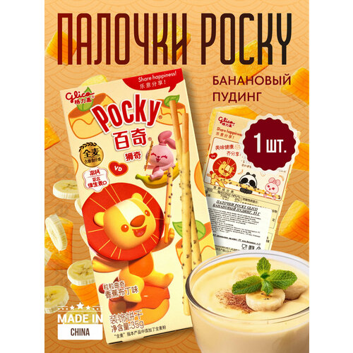 Покки POCKY 35г Палочки со вкусом банановый пудинг Lion 35гр, 1/50 (львенок/желтая коробка)