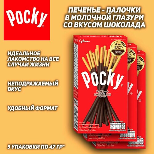 Шоколадные палочки Pocky Chocolate, со вкусом шоколада, 3 шт, 47 гр