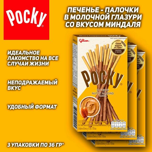 Шоколадные палочки Pocky Almond, со вкусом миндаля, 3 шт, 36 гр