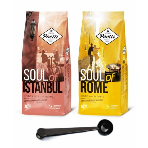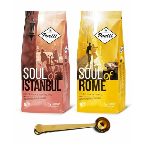 Кофе молотый Poetti Istanbul + Poetti Rome 200 г, набор из 2 шт. + ложка