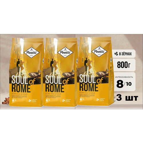 Кофе натуральный жареный зерновой POETTI (ex-PAULIG) SOUL of ROME 800 гр. х 3 шт.