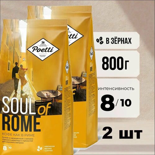 Кофе натуральный жареный зерновой POETTI (ex-PAULIG) SOUL of ROME 800 гр. х 2 шт.